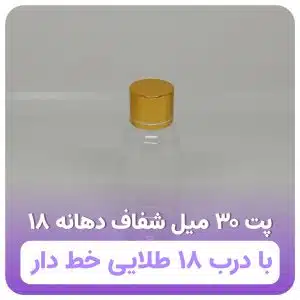 • پت ۳۰ میل شفاف دهانه ۱۸ با درب ۱۸ طلایی خط دار