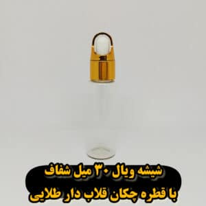 شیشه قطره 50 میل شفاف با قطره چکان قلاب دار طلایی و میله قطره
