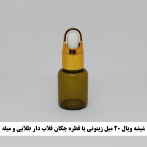 شیشه قطره 30 میل قهوه ای با قطره چکان قلاب دار طلایی و میله قطره