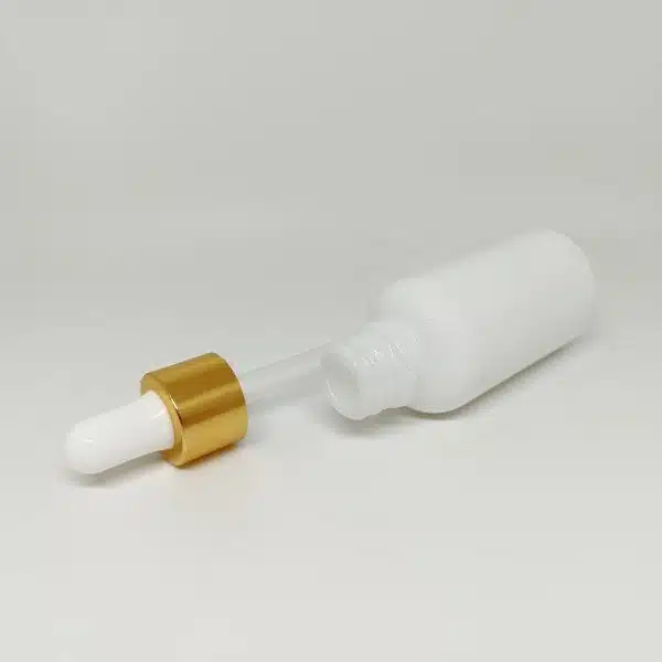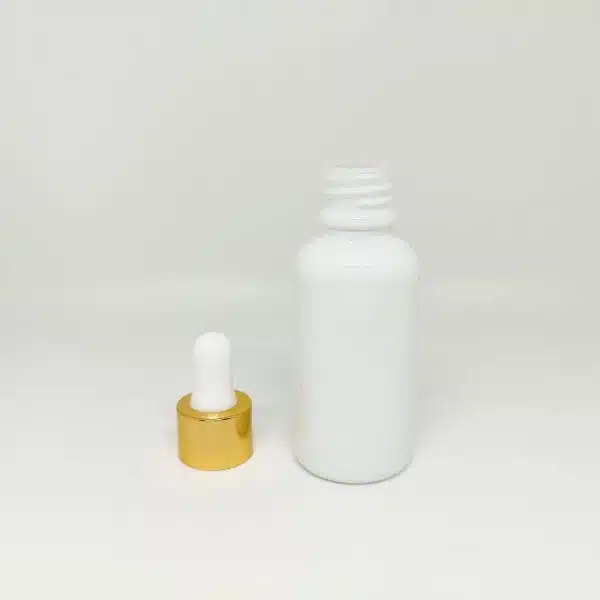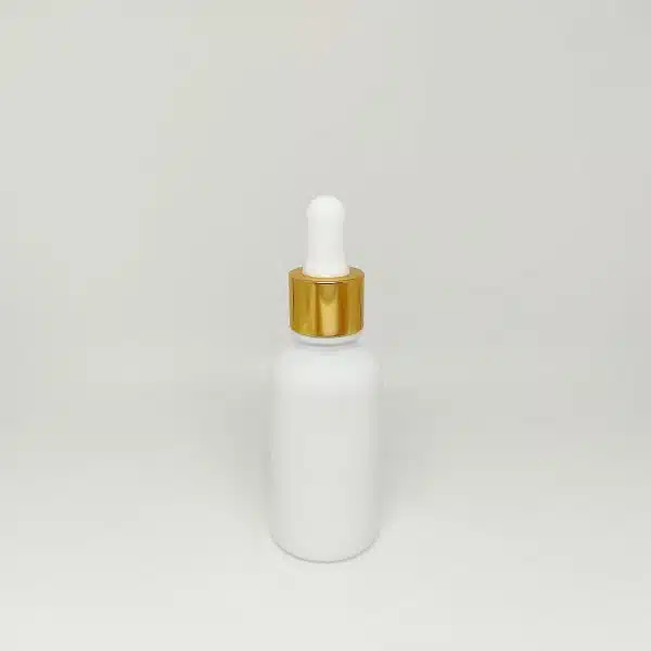 - شیشه قطره ۳۰ میل وارداتی سفید با قطره چکان سفید طلایی وارداتی و میله قطره