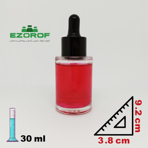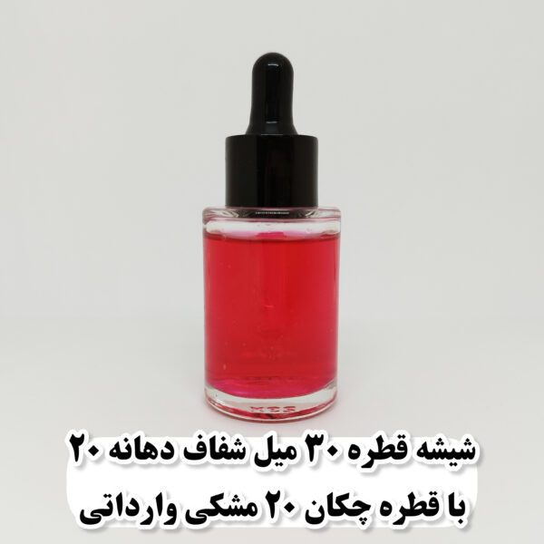شیشه قطره ۳۰ میل شفاف دهانه ۲۰ با قطره چکان ۲۰ مشکی