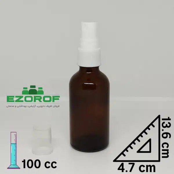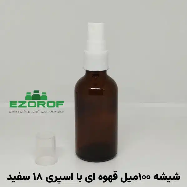 شیشه ۱۰۰ میل قهوه ای با اسپری ۱۸ سفید