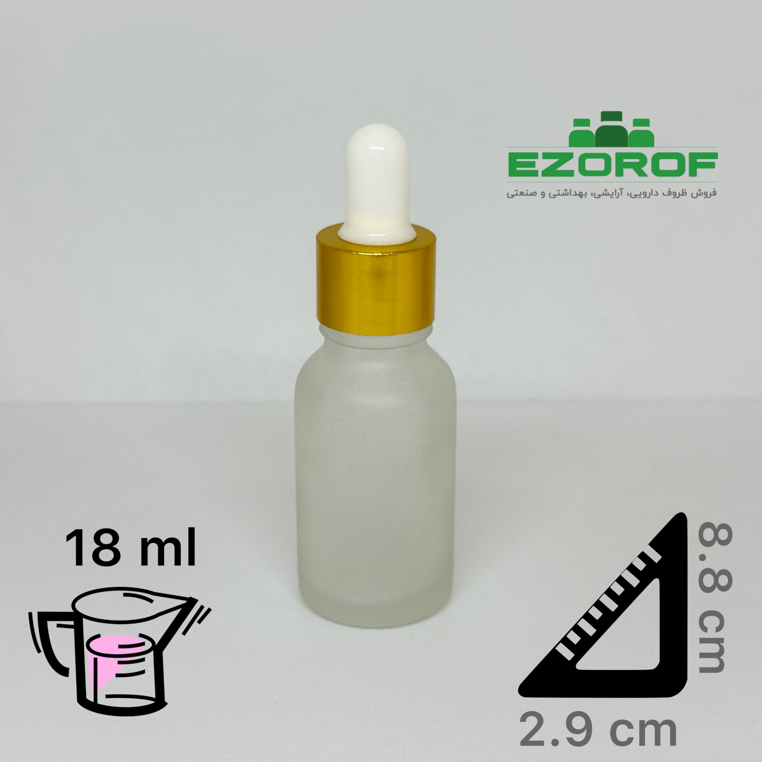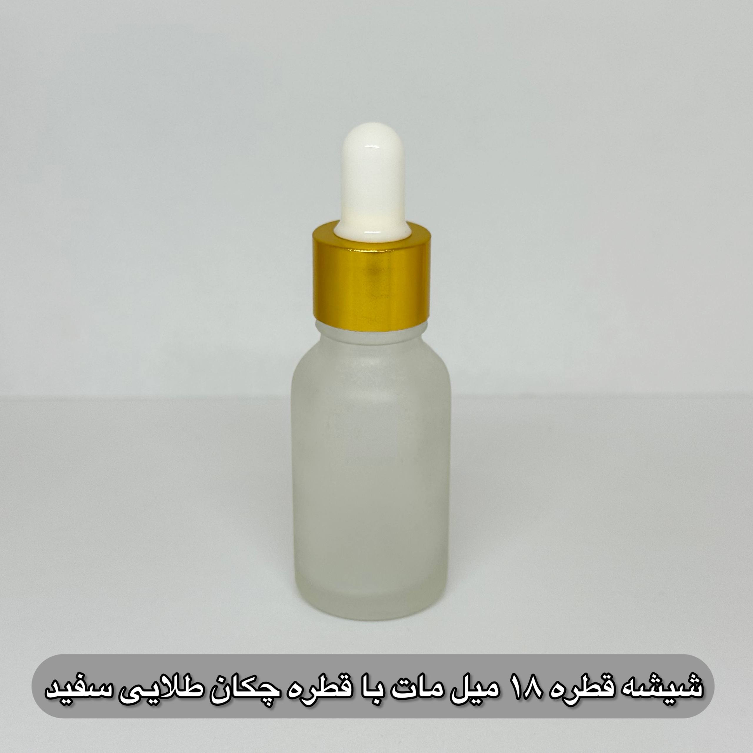 شیشه قطره 18 میل مات با قطره چکان طلایی سفید