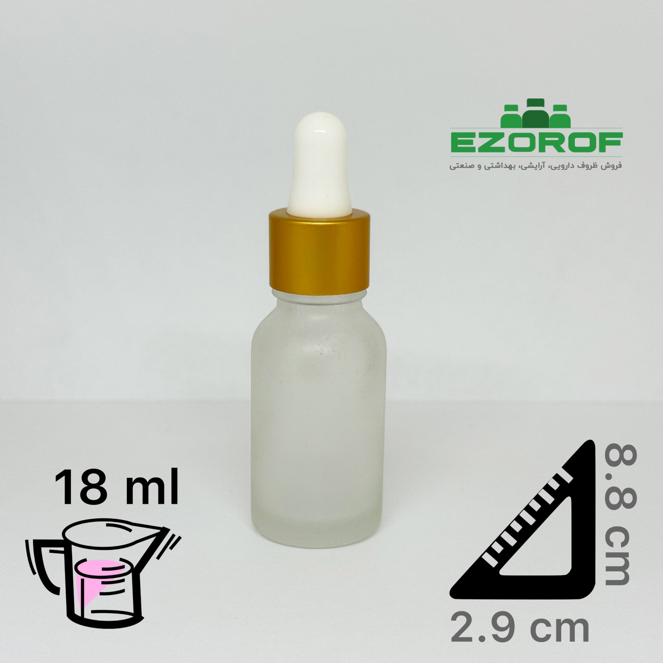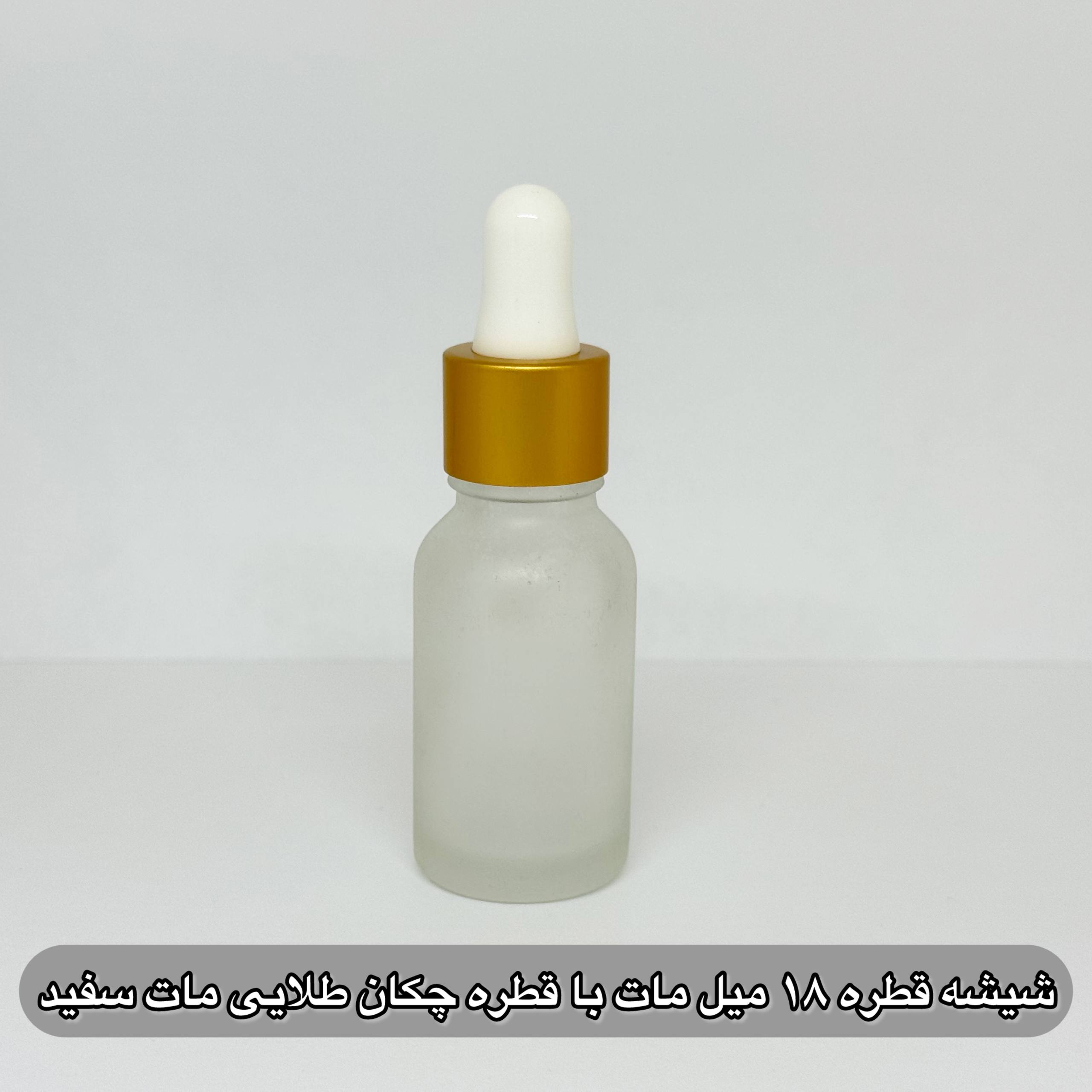 شیشه قطره 18 میل مات با قطره چکان طلایی مات سفید