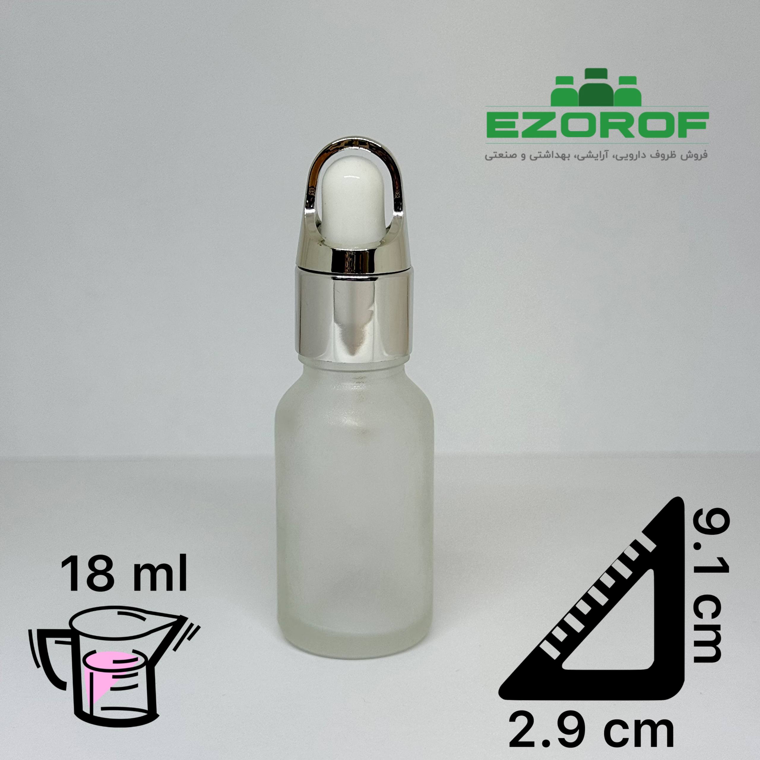 شیشه قطره 18 میل مات با قطره چکان قلابدار نقره ای