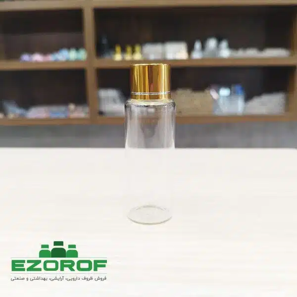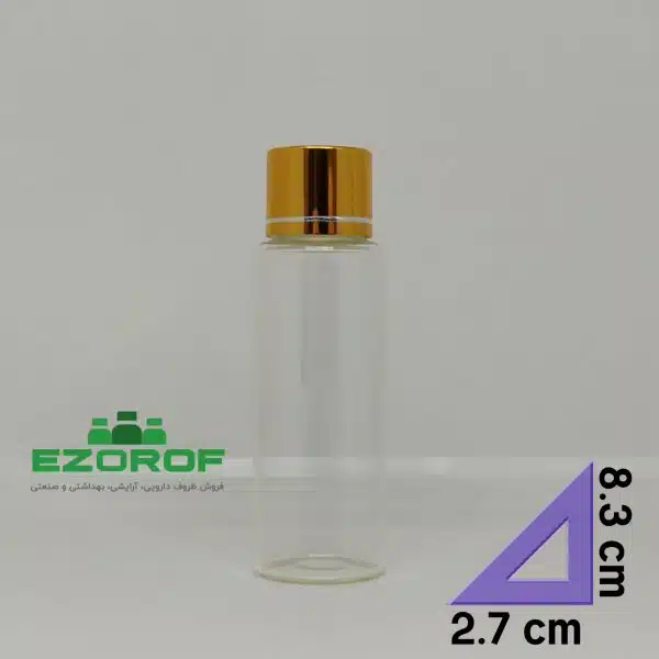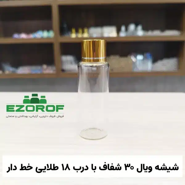 شیشه ویال ۳۰ شفاف با درب ۱۸ طلایی خط دار