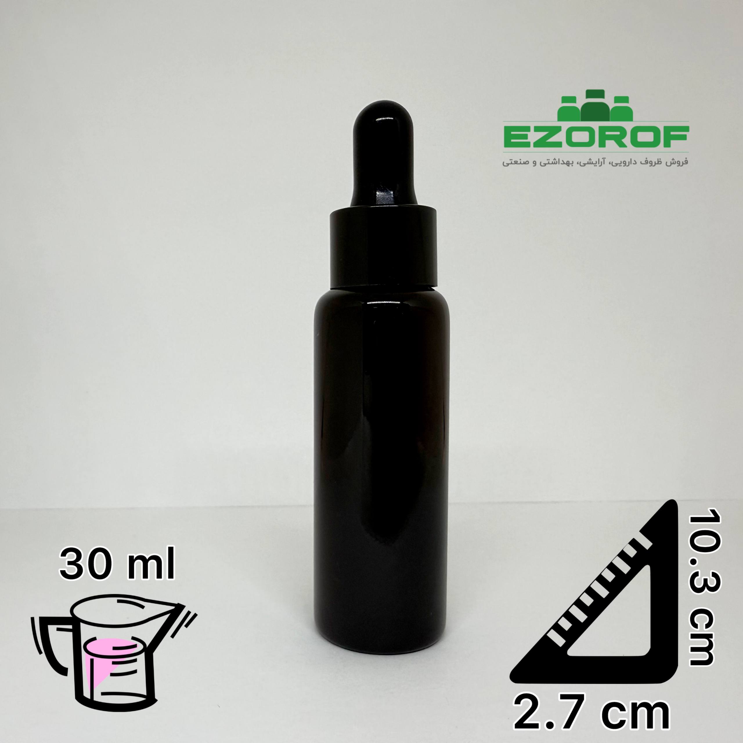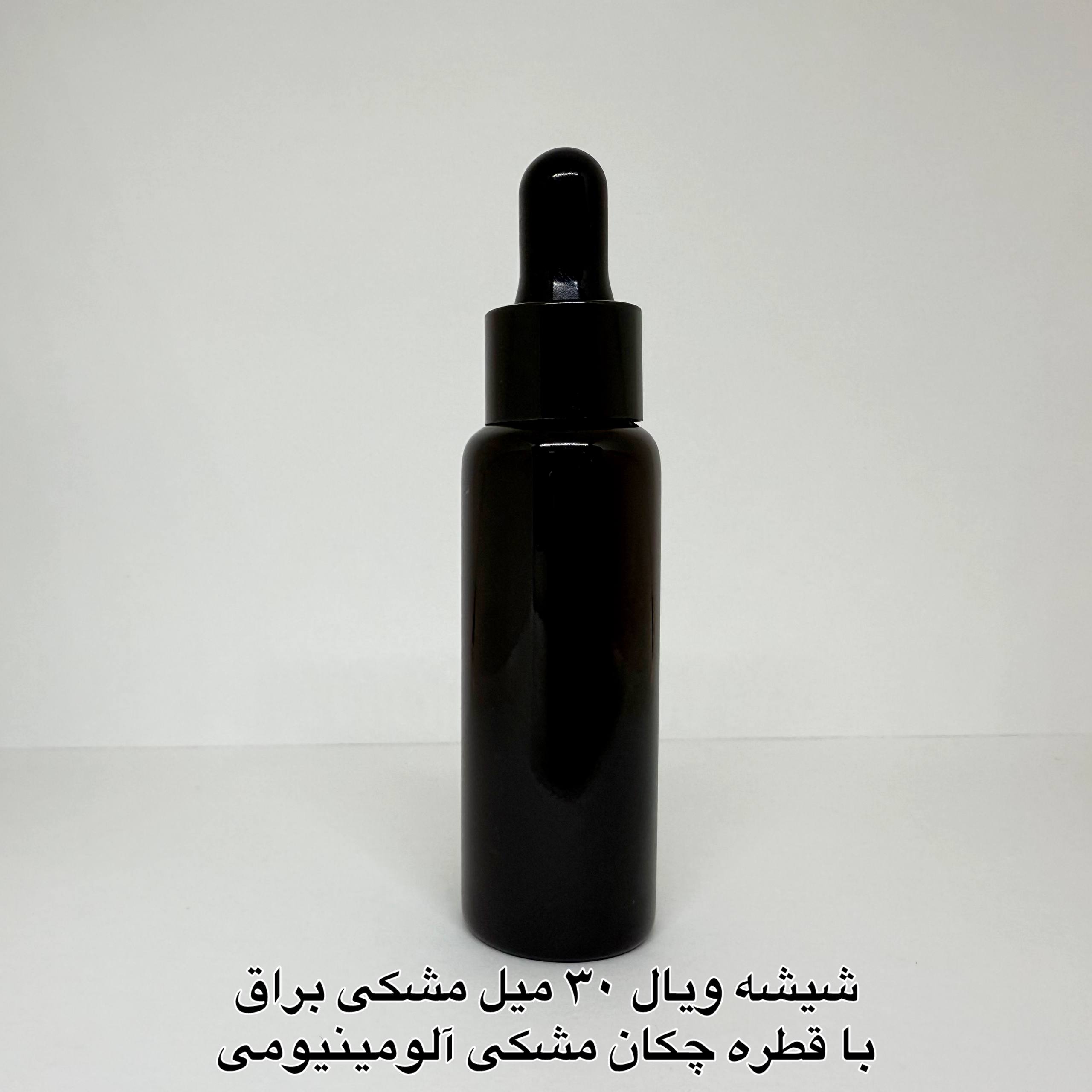 شیشه ویال 30 میل مشکی براق با قطره چکان مشکی آلومینیومی
