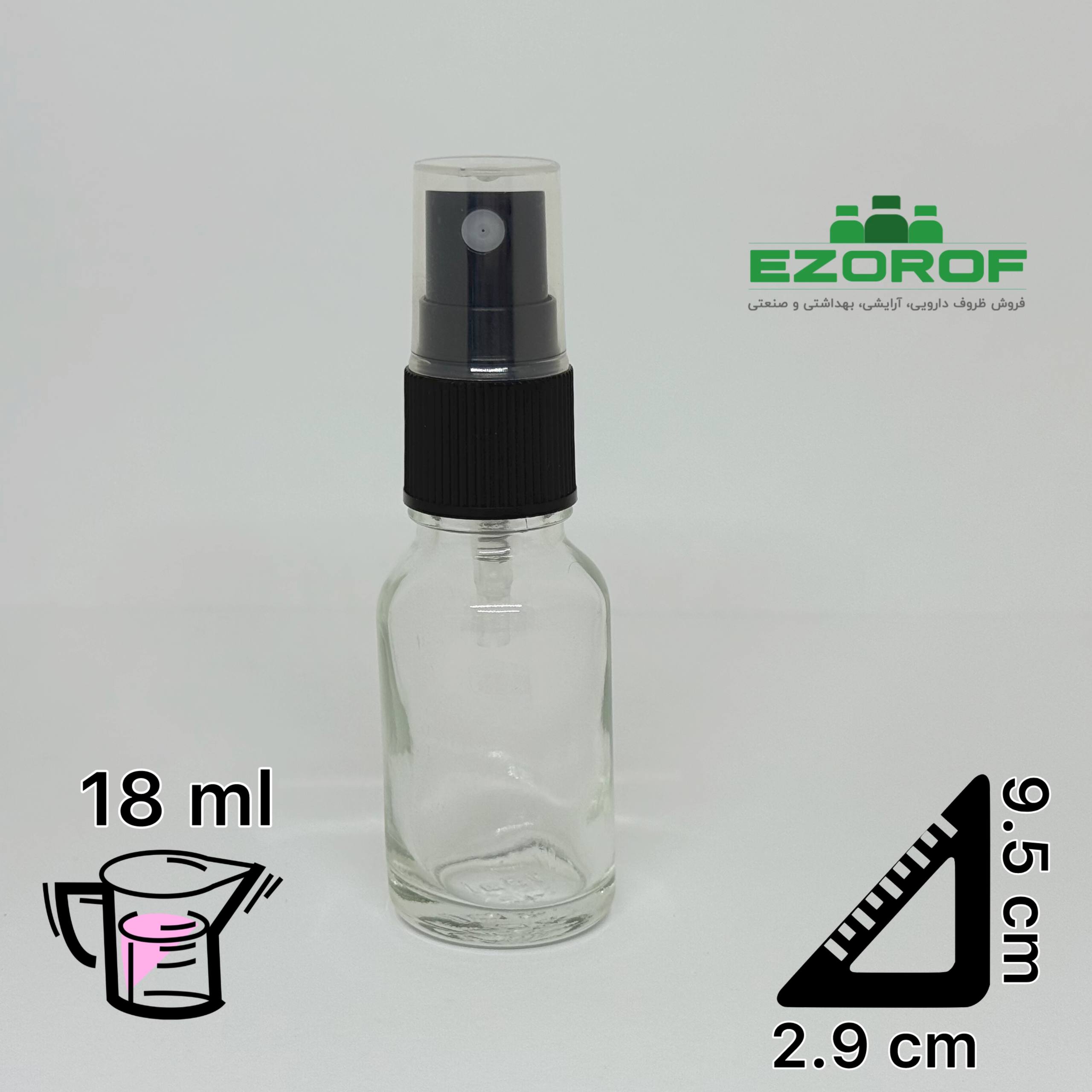 شیشه 18 میل شفاف با اسپری 18 مشکی