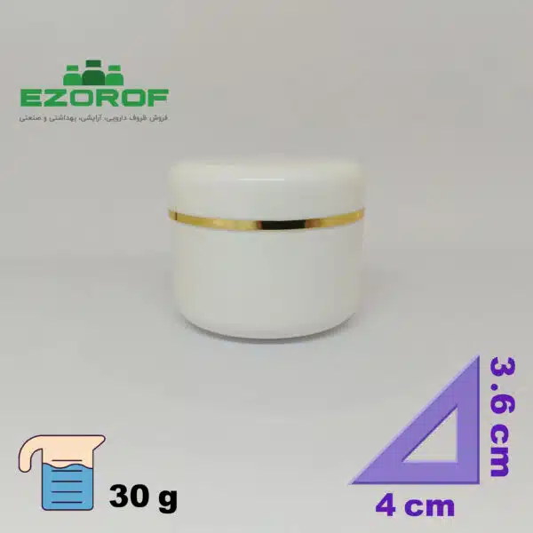 قوطی کرم ۳۰ گرمی سفید رینگ طلایی